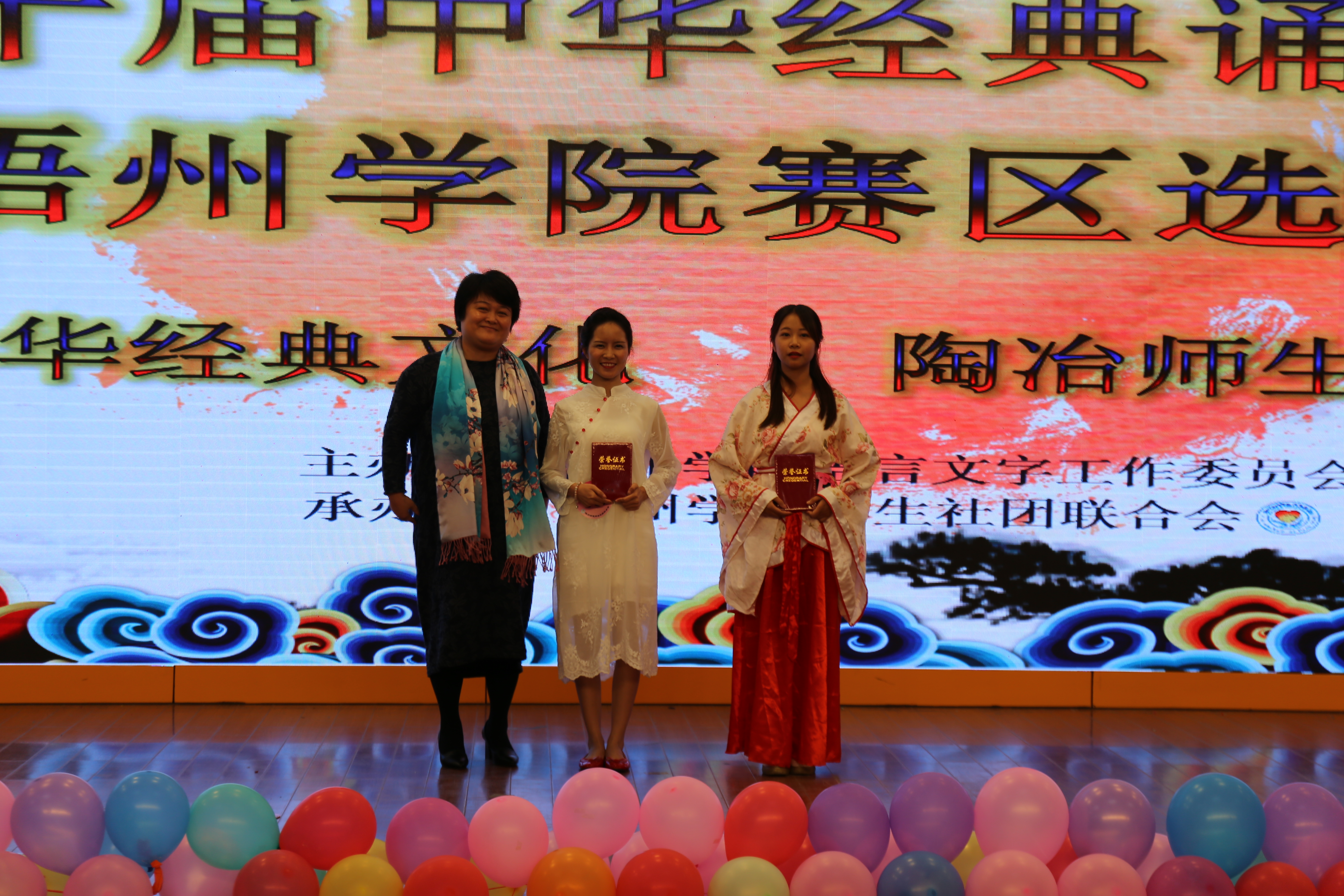 经过激烈的角逐,14级学前教育中职升本1班卢玉婷凭借出色的朗诵《雪花的快乐》获得个人组一等奖,16级汉语言文学2班的集体朗诵节目《腾王阁序》荣获集体组一等奖;获得二等奖的分别是:个人组15级汉语言文学2班张正英、14级学前教育中职升本1班黄雪柔,集体组15级学前教育本科1班、17级新闻学1、2班;获得三等奖的是:个人组17级学前教育中职升本班黄献玉、17级电子信息工程3班杨楠、15级汉语言文学2班赖敏旻,集体组16级对外中泰班、17级汉语国际教育2班、17级学前教育中职升本班。