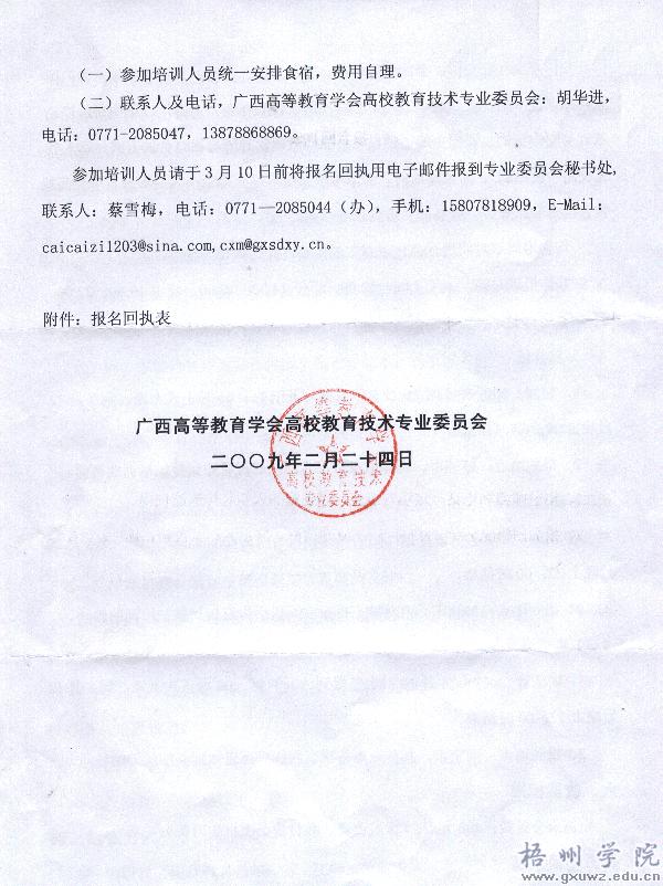 下一条:关于组织开展梧州学院2009年春季精品课程师资培训工作的通知