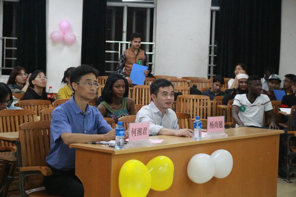 2018年10月26日晚,由梧州学院语言文字工作委员会主办,电子与信息工程学院团委·学生会承办的第十一届广西中华经典诵读大赛梧州学院留学生专场比赛在明理楼S403举行。本次的比赛吸引了来自孟加拉、喀麦隆、几内亚等多个国家的留学生。出席本次的比赛的嘉宾有机械与化工学院教师、材料成型及控制工程专业教研室主任邱辰老师、梧州学院语言文字工作委员会办公室秘书裴英竹老师。还有幸请来了国际交流处留学生管理科杨尚翘老师、文学与传媒学院汉语国际教育教研室主任何湘君老师、广西壮族自治区省级普通话测试员莫瀚宁老师担任本次比赛评委。