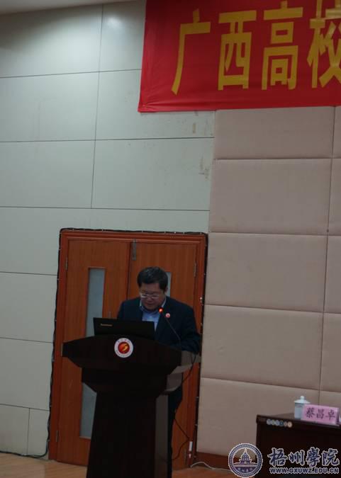 同时,杨校长对转型发展下一阶段工作任务进行了阐述。一、继续搭建政校企合作平台,探索校企融合办学的体制机制建设;二、制订《梧州学院创新创业教育改革方案》,使转型发展与创新创业教育有机融合;三、加快转型发展内涵建设,包括课程改革、师资培养、教材建设、平台建设等。