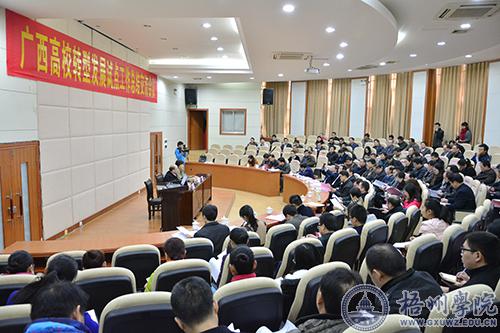 12月16日-17日,教育厅在百色学院召开广西高校转型发展试点工作总结交流会,传达学习国家有关部委关于引导部分地方普通本科高校向应用型转变精神,总结交流我区高校转型发展试点工作经验,加快推动高校转型发展。自治区教育厅主要领导、各有关高校主要领导及业务处室负责人参加会议。我校杨奔校长、教务处戴继明处长参加了本次会议。
