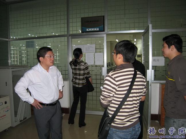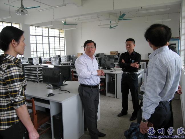 5月4日下午,学院杨奔副院长在教务处处长覃雄彪、副处长陈红、综合管理处副处长倪泳波等陪同下,冒雨到旦冲、第一教学楼、综合实验楼察看实验场地、实验室建设、验收等情况。
