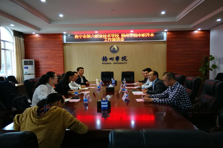 月26日下午,南宁市第六职业技术学校与梧州学院对口中职升本工作座谈会在梧州学院明理理惑楼八楼第二会议室顺利召开。